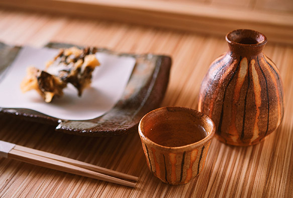 「酒道庵阿部」様から仕入れる日本酒は、いずれも食中酒として優れたものばかり。全国各地から選び抜かれた銘酒が、天ぷらの美味しさを引き立てます。